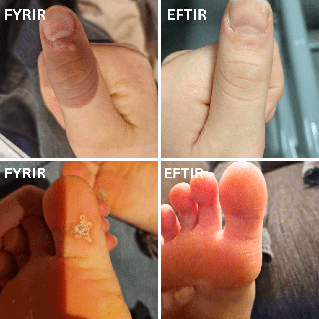 Einungis 2-3 meðferðir dugðu til að uppræta vörturnar í þessum tilfellum sem sjá má á þessum myndum. Það er því um að gera að skoða hvort þessi tækni muni ekki geta nýst í fleiri tilfellum.